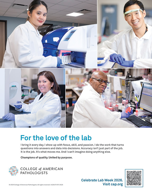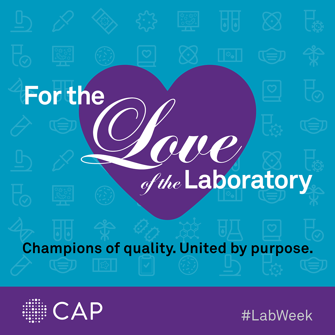The CAP joins the global laboratory community in celebrating your contributions and recognizing the precision, skill, and purpose you bring to patient care every day. During Lab Week, we invite you to share your quality story and what accuracy means to you. Show your pride by sharing on social media and downloading a For the Love of the Lab virtual background and poster.